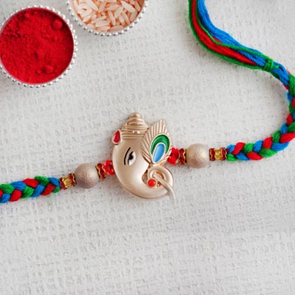 Golden Blue Ganesha Rakhi is made of blue and white. This rakhi is delivered with free pack of Roli & Chawal for tilak. Rakhi design may differ as per the stock available.
